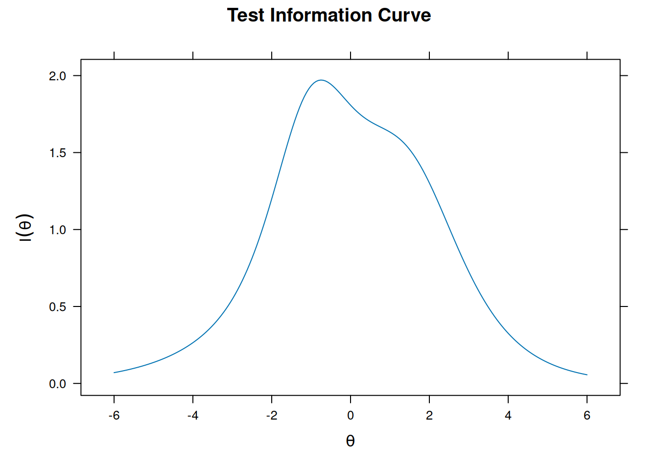 The test information curve shows how much information the test provides across different levels of ability. Let’s visualize this next.